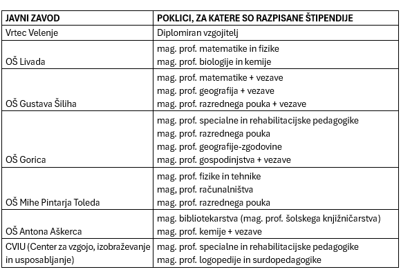 JAVNI RAZPIS ZA DODELITEV ŠTIPENDIJ ŠTUDENTOM, KI SE IZOBRAŽUJEJO V UČNIH IN ŠTUDIJSKIH PROGRAMIH ZA DEFICITARNE POKLICE ZA ŠTUDIJSKO LETO 2025/2026 – Vrtec Velenje