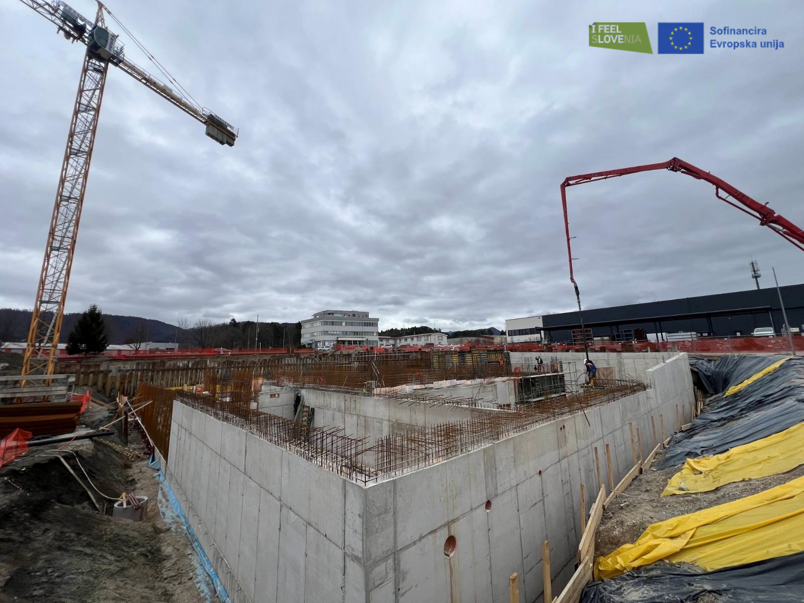 Gradnja Tehnološkega parka Velenje – TecHub, enega ključnih razvojnih projektov v okviru pravičnega prehoda SAŠA regije, napreduje po predvidenem terminskem načrtu. Na gradbišču je izvajalec uspešno zaključil betoniranje temeljne plošče, ki je bilo zaradi velikosti in zahtevnosti objekta izvedeno v dveh fazah. Za temeljno ploščo je bilo uporabljenih približno 2.000 m3 betona.